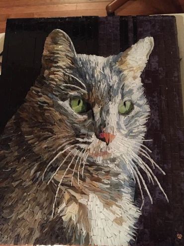 Looking Glass Mosaics is run by Ellen Despins in Madison Wisconsin. I specialize in creating unique, custom stained glass mosaic art portraits, with a focus on pet portraits and architectural pieces. I use intricate techniques to capture the essence of your beloved pet or the beauty of your home in stunning mosaic form.